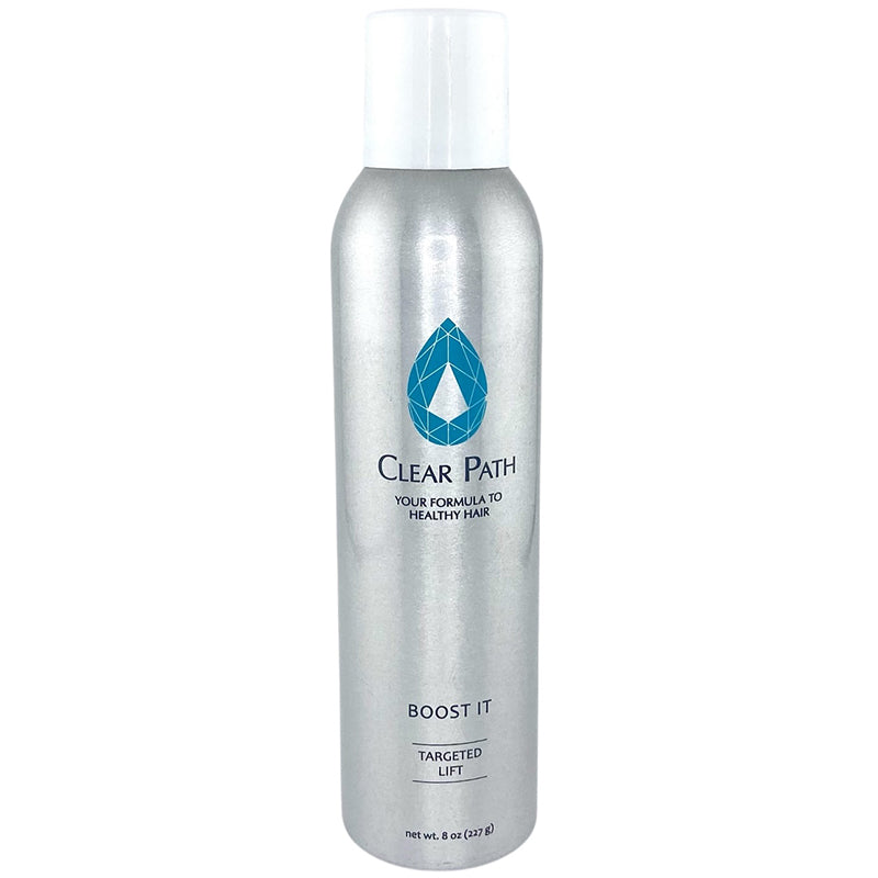 Clear Path® Boost It is a unique foam-to-lotion spray designed for precision application to give your hair targeted lift, dimension, and incredible shine exactly where you want it.